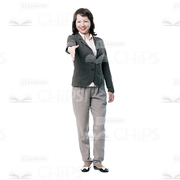 - Appearance: Asian, young woman, cheerful, happy, smiling, greeting;