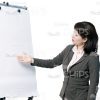 - Appearance: Asian, young woman, with flipchart, presenting, pointing, half-turned, nice, serious, focused, attractive;