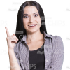 Full-length cutout image of amuzed teenager. Alisa pointing upwards with a great surprise.