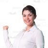 High quality cutout photo of glad young woman wearing white blouse and black skirt. She’s standing straight and making “yes” gesture. Due to classic clothing style could be used as a teacher, coach or course narrator. All photos are already clipped out so there’s no need to remove original background. Fell free to choose any characters’ photo and insert directly into your project. We have dozens of images of the same character with multiple emotions and poses.