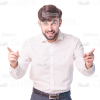 High-quality cutout image of emotional young businessman wearing business clothing, standing straight and pointing his finger in camera. The character’s pack contains lots of photos from multiple angles with a wide range of postures and emotions. All images are presented on a transparent background. To create powerful e-course or e-learning presentation just drop them into your project.