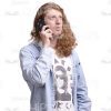High-quality cutout picture shows a pensive young man with long haircut. He is talking on mobile phone while looking thoughtful. His eyes are directed upwards. Wearing casual clothes such as denim shirt, white T-shirt and black trousers. Standing in a half-turned pose. Can be used to illustrate a male character in elearning courses, marketing messages, advertisements, etc.