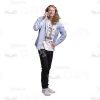 - Style: casual clothes, white sneakers, black trousers, white T-shirt and denim shirt;