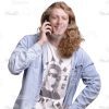 - Appearance: European, young man, male, guy, adult, blonde hair, long hair, handsome, nice, good-looking, happy, smiling, half-turned, with mobile phone, holding conversation, talking the phone;