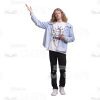 Man Putting Right Hand Up Cutout Photo. High-quality cutout photo of an extraordinary young man standing straight and putting his right hand up to show something. His eyes are looking directly in camera. The guy is wearing light-blue denim shirt and black jeans. His long hair, earring and fashion style show his commitment to youth subculture. There are lots of photos of the same model shot from multiple angles with various postures and facial expressions. All cutout people images are presented with transparent backgrounds.