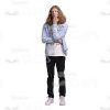 - Style: casual clothes, white sneakers, black trousers, white T-shirt and denim shirt;
