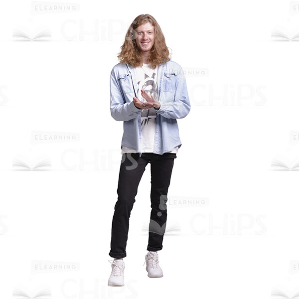 Full-length cutout photo of a happy man character applauding with both palms. He looks smiling and pleased. It seems that he really likes someone’s speech. The photo would be a great addition to any kind of web or print related project. Try to use out attractive cutout characters to illustrate a learner, mentor or casually dressed narrator in your own elearning course. The presence of a transparent background allows you just to drop an image into the e-course without any further treatment. Cutout people photos are available in several formats such as S, M, L and XL. Feel free to pick the right size that fully meets your requirements.