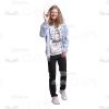 - Style: casual clothes, white sneakers, black trousers, white T-shirt and denim shirt;