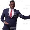 The high-quality cutout photo of an African businessman holding presentation. He looks calm and focused, A man is dressed in classic dark business suit with white shirt and red tie. He is pointing to the left with his left hand. The character is African American, he has the dark hair with short haircut. This handsome cutout model provides you more opportunities to create an interesting visual story.
