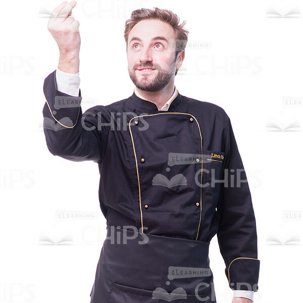 Full-sized cutout photo of a good-looking young man dressed in chef’s uniform. He is gesturing with a right hand while looking into the distance. Looks nice and cheerful. This cut out image can be used to illustrate a cook professional in any kind of web-design project. The character is imposed on the transparent background, so there is no need for its further treatment. Available in few different sizes (S, M, L and XL) to fit the needs of any customer. Be sure that our cutout people images will help you to create an attractive elearning course, without spending time on repetitive tasks such as the processing of graphic content.