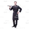 High-quality cutout photo of a smiling chef holding a tray with a right hand. He looks happy and cheerful. The image can be used to illustrate a handsome young man dressed in chef’s uniform. It would be a perfect addition to any kind of web and print related projects. The presence of a transparent background greatly facilitates the process of working with the photo.