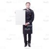High-quality cutout photo of a nice chef standing upright while holding a white board with both hands. Looks like that he is presenting something. The cutout photo would be an excellent addition to any elearning project. It’s available in four different sizes, such as S, M, L and full-resolution XL, so you can choose the right one that fit your needs. You will surely make your e-course or presentation stand out from the crowd; just use our cut out people pictures as illustrations to them.