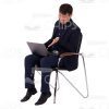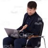 Laughing Asian Businessman Pointing at Laptop While Sitting Cutout Photo