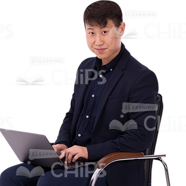Satisfied Asian Businessman Working on Laptop Cutout Photo