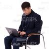 Focused Asian Businessman Sitting and Working on Laptop Cutout Photo