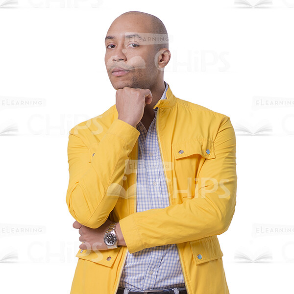 Full-length cutout image of a handsome young man standing upright. Looks confident and thoughtful. He touches a chin with his right hand while looks at the camera. Dressed in modern casual clothes. This character can be used in any kind of web-design projects. It’s perfect for e-learning courses, advertisements, presentations, etc. The precense of a transparent background allows to drag-and-drop this photo into a desired slide.