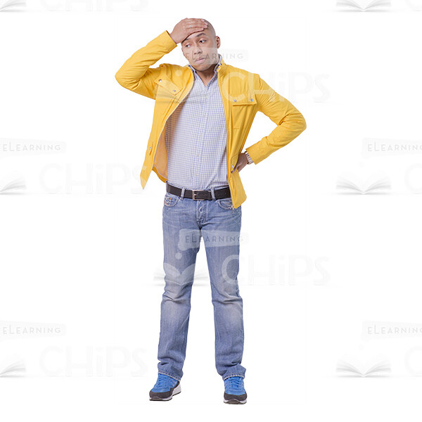 High-quality cutout image of a sad young man holding hand on his forehead. It seems that he did something wrong and now worried about that mistake. Dombre wears modern casual clothes such as yellow jacket, blue jeans and white shirt. He would perfectly illustrate a learner or young course narrator during the training session. Can be used in any kind of web-design projects. This cutout photo is available in few formats: S, M, L and XL. In such a way, you can choose the size that fully meets your requirements. The presence of a transparent background allows you easily drag-and-drop a character into the slides of a project.