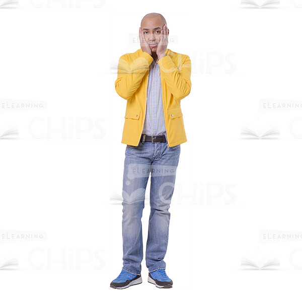 Full-length cutout picture of a discouraged young man standing in full growth. He looks surprised and astonished. Would perfectly illustrate a person fully involved in a training process. Can be used in e-learning courses, presentations, advertisements, etc. All cutout photos are available in few formats, such as S, M, L and XL, and It is possible to choose any size that meets your requirements. Be sure that your own e-course will become easier to grasp with our attractive cutout characters.