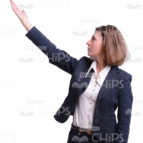 Cutout Image Of Mid-Aged Woman Pointing Upwards