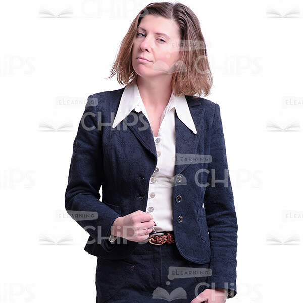 Full-sized cutout photo of a handsome businesswoman showing her satisfaction with the results. She looks self-confident while shows the yes gesture with a right hand. Her eyes are directed at the camera. The image would be a great choice to illustrate a senior female business mentor, narrator or tutor. We’ve collected lots of Ella’s photos taken from multiple angles. Her poses, gestures and facial expressions look absolutely natural. Each picture is represented over the transparent background and is available in few various sizes. You’ll surely create an eye-catching e-learning course by using our attractive cutout characters.