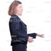 - Appearance: European, mid-aged woman, lady, adult, middle aged, brown hair, semi long hairstyle, business woman, sales manager, quality expert, lawyer, office manager, trader, handsome, nice, beautiful, pretty, good-looking, attractive, profile, side view, gesticulating, throwing hands up, explaining, emotional, attentive, focused;