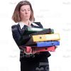 Businesswoman With Stack Of Folders Reacts Emotionally Cutout Picture