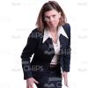 - Style: business style, dark gray skirt, jacket and white blouse;