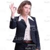 - Style: business style, dark gray skirt, jacket and white blouse;