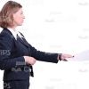 - Appearance: European, mid-aged woman, lady, adult, female, middle aged, brown hair, semi long hairstyle, business woman, sales manager, quality expert, lawyer, office manager, trader, handsome, nice, beautiful, pretty, good-looking, attractive, giving, taking, putting, outstretched hand, with papers, holding papers, calm, focused, concentrated, attentive, side view, profile view;