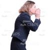 Full-sized cutout image of a middle-aged businesswoman screaming out loud with both hands at her mouth. She is standing in a profile. Dressed in a dark-gray formal suit. The photo can be used to illustrate a middle-aged female character in any kind of elearning project. It is available in several sizes such as S, M, L and the full-resolution XL. Feel free to pick the formal that satisfy your needs. The background-less cutout people photos allow you to create own visual stories without wasting time on their further processing.