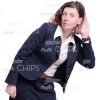 - Style: business style, dark gray skirt, jacket and white blouse;
