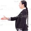 - Appearance: Asian, woman, young, adult, female, lady, businesswoman, person, long hair, beautiful, trader, exchange dealer, lawyer, account manager, office employee, nice, intelligent, educated, clever, dark hair, collected hair, worker, handsome, attractive, good-looking, friendly, left profile, half-turned, quarter-turned, happy, smiling, gesturing, greeting gesture, hello, outstretched hand, positive, welcome, glad, offering hand, handshake, wide open eyes, gesture nice to meet you, shaking hand;