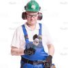 High-quality cutout image of a confident middle-aged worker holding a grinder with a right hand. His eyes are focused on a camera. A man is dressed in builder uniform: a blue overall, white polo shirt, and green hard hat. The cut out character photo would be a great addition to any kind of web-design project. It’s represented in the few different sizes to fit the needs of any customer. The transparent background allows you just to drop the image into the project, without any additional processing. Just choose the size you need and start to create an amazing visual story for your trainees.