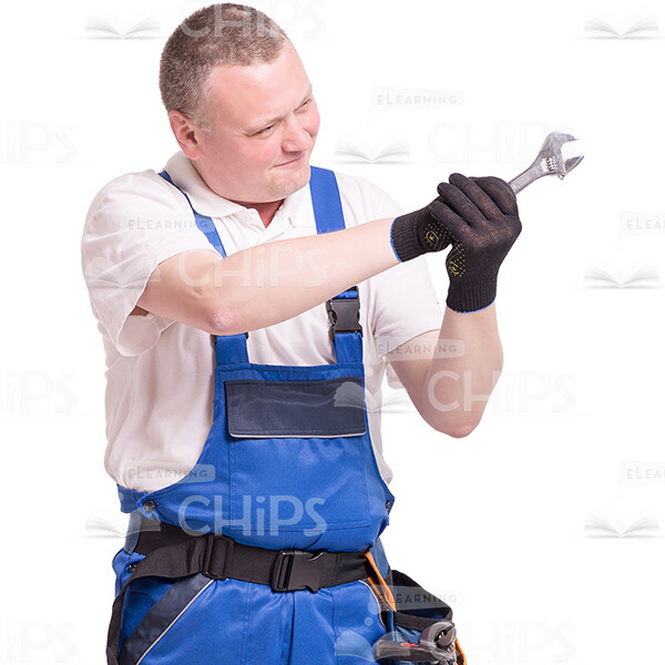 Full-length cutout photo of middle-aged man is standing half-turned. He tilted his head to the right. The worker is concentrated on his task. He is turning screws. Igor is pleased with his work, he is smiling slightly. The cutout image can be used to illustrate a handsome character in any kind of web and print related projects. The photo is available in few different sizes to fit the needs of each customer. The presence of a transparent background makes adding the image on a slide easy and convenient. Feel free to pick any of our people cut outs you need to create an amazing educational project.