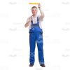 Pleased Builder Holding a Ruler in the Air Cutout Image
