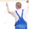 Full-sized cutout picture of a handsome handyman standing upright while raising up both hands. He is measuring the length with a retractable flexible ruler. Wearing builder’s uniform such as blue overall and white polo shirt. This male cutout character’s photo would be a great choice to illustrate a construction professional in any kind of web-design project. It is available in few different sizes such as M, L and XL, to fit the needs of any client. Just look through our cutout people library and pick any pictures(s) you need to create an own fascinating e-course.