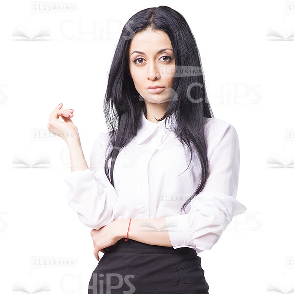 High-quality cutout photo of a young businesswoman standing in full growth. She is looking thoughtful and focused while her eyes are directed at the camera. Dressed in business clothes such as black skirt and white blouse. This image would perfectly illustrate a young business coach or course narrator during e-learning presentation. It is available in few formats, so you can easily choose the size that meets your requirements. Inna is a professional photo model. Her poses and facial expressions look absolutely natural. In our stock, you can find a lot of Inna’s photos with various emotions and postures, which are in demand for the development of web-design projects. They are presented with transparent backgrounds. Feel free to pick any item that you need.