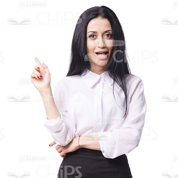 Full-length cutout picture of a handsome business woman pointing up. She shows that she has an idea and wants to share it with colleagues. Looks surprised and emotional. Can be used to illustrate an attractive mentor, tutor or course narrator. Inna’s cutout photos were taken from multiple angles. They will definitely beautify your own e-learning project. Each photo is available in few formats, and it’s possible to choose the size that suits you best. The presence of a transparent background is a distinct adventage, that will greatly facilitate your working process. Feel free to pick any of our high-quality cutout photos that you like.