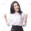 - Appearance: European, young woman, dark-haired, charming, thumbs up, satisfied, pleased, happy, exciting, screaming, nice, attractive;