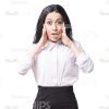 - Appearance: European, young woman, dark-haired, charming, excited, dumbfounded, open-eyed, surprised;