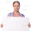 High quality cutout photo of quietly standing middle aged woman holding board. Kate is a professional photo model. Lots of postures and facial expressions from multiple angles allow you to create e-learning course avoiding any difficulties. We made all the tedious work and put photos on a transparent background. Just drop it into your project and create custom scene for your e-course. All photos are presented in four variations.