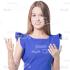 Graceful young woman express her opinion during hypothetical conversation. Can be used as an example of intelligent young person involved in training. Would be perfect addition to e-learning courses. Due to a transparent background simplifies the e-course development. Cute casual dress gives a fresh and modern look.