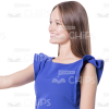 Full-length cutout image of a neat young girl wearing gorgeous casual blue dress. Would be perfect illustration of graceful young woman involved in hypothetical conversation. In this photo our girl is standing half-turned and greeting someone with a friendly smile on her face. Can be used in various presentation and e-learning modules.