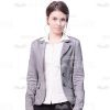 - Style: business wear, gray jacket, white blouse and dark pants;