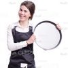Full-resolution cutout photo of a smiling waitress holding the round tray with both hands. She looks cheerful and joyful. It seems that she is showing a salver to someone else. Wearing waiter’s uniform such as black apron and white blouse. This handsome female character would become a great addition to your own elearning project. The image is represented over the transparent background and is available in few different sizes. Feel free to choose any format that fully fits your requirements. Our huge cutout people library will surely satisfy the needs of both novice and e-learning professionals.