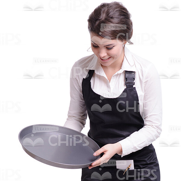 Pretty Waitress With Tray Leaning Forward Cutout Photo