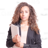 - Appearance: Arabic, young girl, woman, good-looking, nice, curly, serious, with papers;