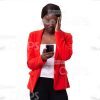 - Appearance: African, American, woman, young, adult, female, lady, businesswoman, person, long hair, fashion, beautiful, trader, exchange dealer, account manager, lawyer, office employee, nice, good-looking, intelligent, educated, clever, dark hair, stylish, collected hair, worker, attractive, serious, troubled, elegant, scared, focus on phone, concentrated, looking down, cellphone, with mobile phone, left hand near the head, gesture Oh no!, worried about something, thoughtful;