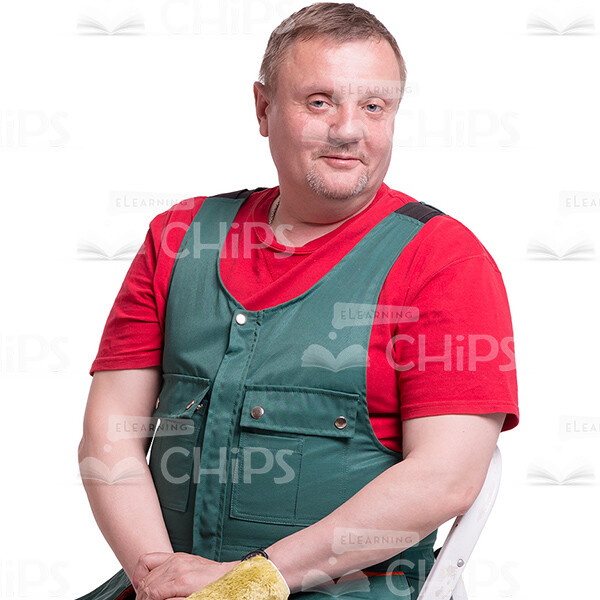 High-quality cutout image of middle-aged repairman is sitting at the rung of the ladder. He took a break. There is paint roller in his hands. His eyes are directed at the camera. Oleg seems to be pleased with the results of his work. The cutout image can be used to illustrate a handsome character in any kind of web and print related projects. The photo is available in few different sizes to fit the needs of each customer. The presence of a transparent background makes adding the image on a slide easy and convenient. Feel free to pick any of our people cut outs you need to create an amazing educational project.