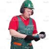 High-quality cutout image of a middle-aged man. He is a repairman. We have a full-length photo. He is standing half turned the full face. He has the black gloves and holding with both hands the hand saw. He is not looking at the camera. He is concentrated on the saw. He is dressed in worker’s uniform, such as green overall and red T-shirt. He has the green helmet and black-red earpieces. We’ve collected lots of the same model’s photos with dozens of poses, gadgets and emotions, especially for e-learning course developers. They would be useful to illustrate a skilled industrial employee during the work. Each image is represented in few sizes and is available with the transparent background. Feel free to browse our huge cutout people library and pick any picture(s) you need to create an amazing visual story.